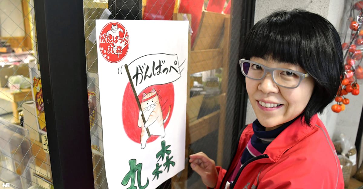 猫も応援 がんばっぺ 神様の町丸森 ポスターで 日本経済新聞